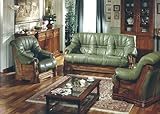 | ✚✚✚ Pavese Italian Leather Sofa Set in Green Color Dimensions: Please call. \n The Pavese traditional sofa set designed to make you feel like a king with all its comfort, wood frame with genuine green olive Italian leather. . The Pavese traditional sofa set designed to make you feel like a king with all its comfort, wood frame with genuine green olive Italian leather. Features: