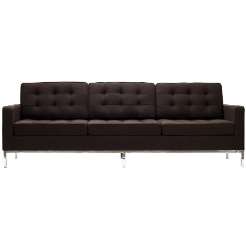 Florence Knoll Style Sofa in Woolen Blend in Brown High Quality Reproduction of original