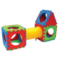 Sixteen Piece Cube Play?ELR-0814 Features: -Cube play.-With tunnels that connect the cubes.-Large openings for crawling in and out.-Smooth, rounded edges for safety.-Manufacturer provides limited warrnty for Quality Satisfaction Guarantee. Construction: -Blow molded construction. Assembly Instructions: -Assembly required.