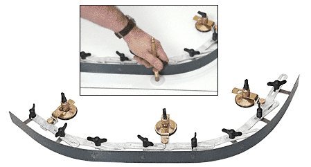 CRL 35 in long Flexible Shape Template?Measure Free-Form Dimensions on the Job Site Immediate Cutting of the Same Shape in Glass With the CRL Flexible Shape Template , inaccurate measurements are a thing of the past. Now copying and cutting irregular shapes is no longer a "guessing game". This template consists of a flexible metal band connected to individual metal segments. The segments are joined by wing nuts which, when tightened, hold the template in it's desired shape. Suction cups fasten to these segments, holding it in place while cutting. Three aggressive suction cups are included with the FST1 . Minimum Order: 1 Each At 35-1/2 inches (900 millimeters) long, this template setup can cover most small to medium jobs. Great for cutting arched entry ways, windows, railings and escalator glass. The possibilities are endless. Best when used with the CRL Toplife Deluxe Glass Cutter and Transverse Handle due to it's free rotating, trailing cutting head (not included).