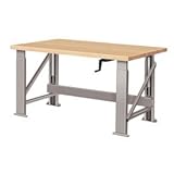 Manual Hydraulic Bench W/ Wood Top - 96"W X 30"D GrayManual Ergonomic Hydraulic Work Bench This steel work bench withstands up to 1,000 lb. capacities. Durable steel legs enclose hydraulic lifts for safety. Bench offers 8" height adjustment using a Manual Hand Crank. Crank easily folds under bench when not in use. Includes hardwood top. 96.00 L. 34.00 W. 42.00 H.