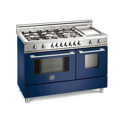 #This super-wide range has a cooktop with six gas burners, including a triple-ring, high-efficiency burner with separately controlled flames, and a stainless-steel electric griddle. The main electric oven has nine functions, from convection, baking and roasting to warming. The pyrolytic oven linings requires no cleaning agents. High temperatures burn off fat and grease leaving a safe, easily disposed of residue. Quadruple-glass doors minimise heat loss.9 Cooking function main oven 4 Function auxiliary oven Self-clean main oven Safety device, one hand ignition Convection The useful auxiliary oven, without fan, has four modes Matching range hood and backsplash available Products and packaging are 99% recyclableADA Compliant: No Auxiliary (Btu h Watts): 3400 Auxiliary Oven ( F C): 220 - 440 Auxiliary Oven (Btu h Watts): 1800 Auxiliary Oven Dimensions: 11-3 4" x 14-1 2" x 17-1 4" Auxiliary Oven Volume: 1.7 ft Convection Oven: Yes Depth: 25-1 8 Depth Side Panel: 24 Dual wok (Btu h Watts): 12000 3000 Electric Auxiliary Oven: Yes Electric Griddle: Yes Electric Grill: Yes Electric Oven: Yes Finish: Blue Fuel Type: Dual Fuel Gas Range Top: Yes Height: 35-1 2 - 37-1 4 Number of Burners: 6 Oven ( F C): 275 - 500 Oven (Btu h Watts): 15500 Oven Dimensions: 23-3 4" x 14-1 4" x 18-1 4" Oven Volume: 3.4 ft Rapid (Btu h Watts): 11000 Semi-rapid (Btu h Watts): 6500 Simmer rate (Btu h Watts): 750 Style: Freestanding Width: 48