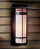 | ✚✚✚ Hubbardton Forge 305994-17 Outdoor Dark Smoke Banded Single Light Single Light Outdoor Wall Sconce from the Banded Collection Dramatic Spaces under the Stars. Features: Banded aluminum with top plate 20.3"(H) x 9.4"(W) (1) A-19 150W Medium Bass bulb or (1) Self-Ballasted 13W GU24 Fluorescent Bulb (Fluorescent Option) Available with Opal or Stone glass UL Listed for wet locations Image shown in Natural Iron finish with Opal glass