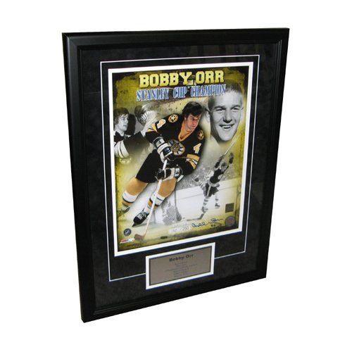 Bobby Orr Boston Bruins NHL Hand Signed Framed 11x14 Photograph Stanley Cup Collage