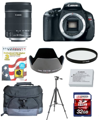 Canon EOS Rebel T3i w/Canon EF-S 18-135mm f/3.5-5.6 IS Lens + Canon Hood + Canon Battery + Bag + 67mm DHD UV Filter + Tripod + 3 Yr Ext DSLR Warranty + 32GB .