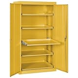 | ✚✚✚ Pull-Out Tray Shelf Cabinet Color: Yellow ET52362466-EYLL Color: Yellow Features: -Convenient pull-out shelves on full extension ball-bearing slides.-Four leg levelers to keep cabinet level on uneven surface.-Three point locking handle/keys secure the contents. Color/Finish: -Powder coat finish in 14 colors.