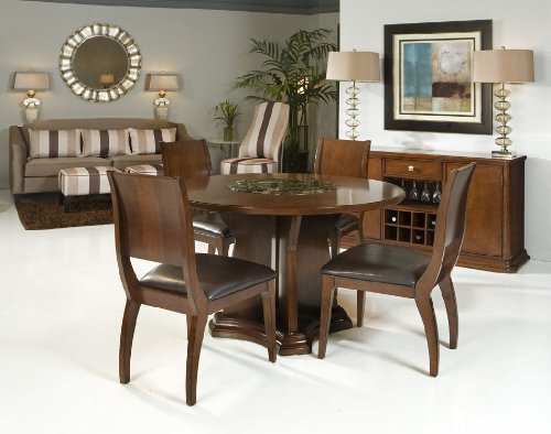 #Transitional 5 piece round dining set with built-in lazy susanSETASHTON5PCTransitional designLazy Susan built-inAssembly requiredRich dark cherry finish. Table: 51 Round x 30, Chair: 20.75W x 25.75 x 37 Comes with standard 1 year limited warranty62x44x60